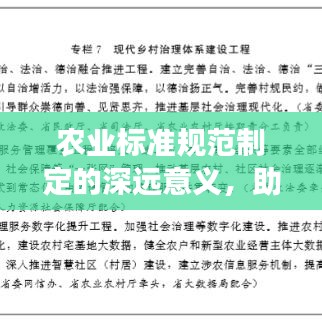 農(nóng)業(yè)標(biāo)準(zhǔn)規(guī)范制定的深遠(yuǎn)意義,助力農(nóng)業(yè)現(xiàn)代化發(fā)展