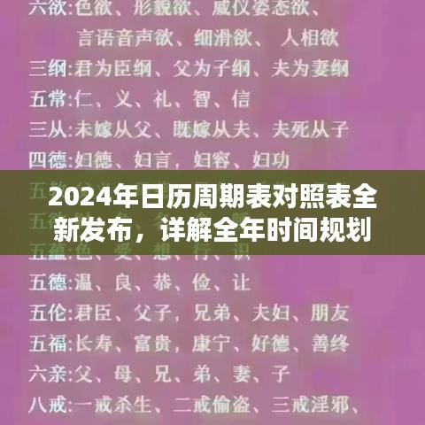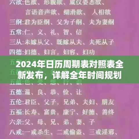2024年日歷周期表對(duì)照表全新發(fā)布,詳解全年時(shí)間規(guī)劃